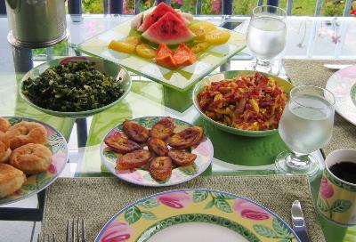 | Rough Guide Jamaica has this to say about The Blue House, "SUPERB deluxe B&B with immaculate, tasteful rooms. The highlight is possibly the best Jamaican-fusion cooking on the island encompassing traditional Chinese and Indian styles. Breakfast and dinner are served family- style, while the genial hosts are a mine of information and offer islandwide tours. A pool and nearby river bathing are great for relaxation." |