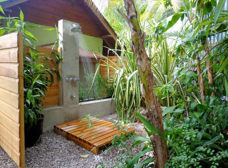 - a compact bathroom between the two rooms PLUS a private, nature lovers, outdoor shower enveloped in a