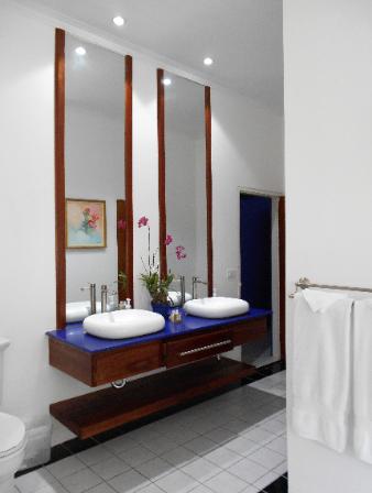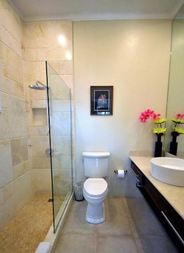 - it's large modern bathroom and it's huge open air rain forest shower,