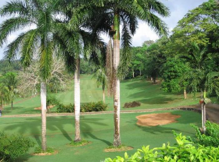 | There are two Golf Courses in our area: Sandals Golf & Country Club - located in the hills close by, this course with its narrow fairways, offers a challenging test of your game. Telephone: 876-975-0119 $100 greens fees or $70 for 9 holes Mandatory Caddie - $15 & $12 Optional Cart - $38 & $25 Club rental - $17 (Wilson Pro-staff) or $45 (Callaway X-14s) SuperClubs Golf Club - part of the Breezes Resort in Runaway Bay, offers a championship caliber 18-hole golf course Telephone: 876-973-7319 $80 greens fees or $50 for 9 holes Caddie - $14 & $9 Cart - $35 & $23 Club rental - $14 The Blue House Ocho Rios Jamaica offers a Guys on the Green vacation for men which includes two rounds of golf per guest and an After Golf massage. |