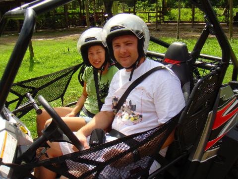 | countryside, through paths that meander across hillocks and takes you to the beautiful community of Mount Zion where you will have a tour of the 165 year old Church and visit the local bar. Chukka Cove Farm you'll stop for a dip a private cove. |